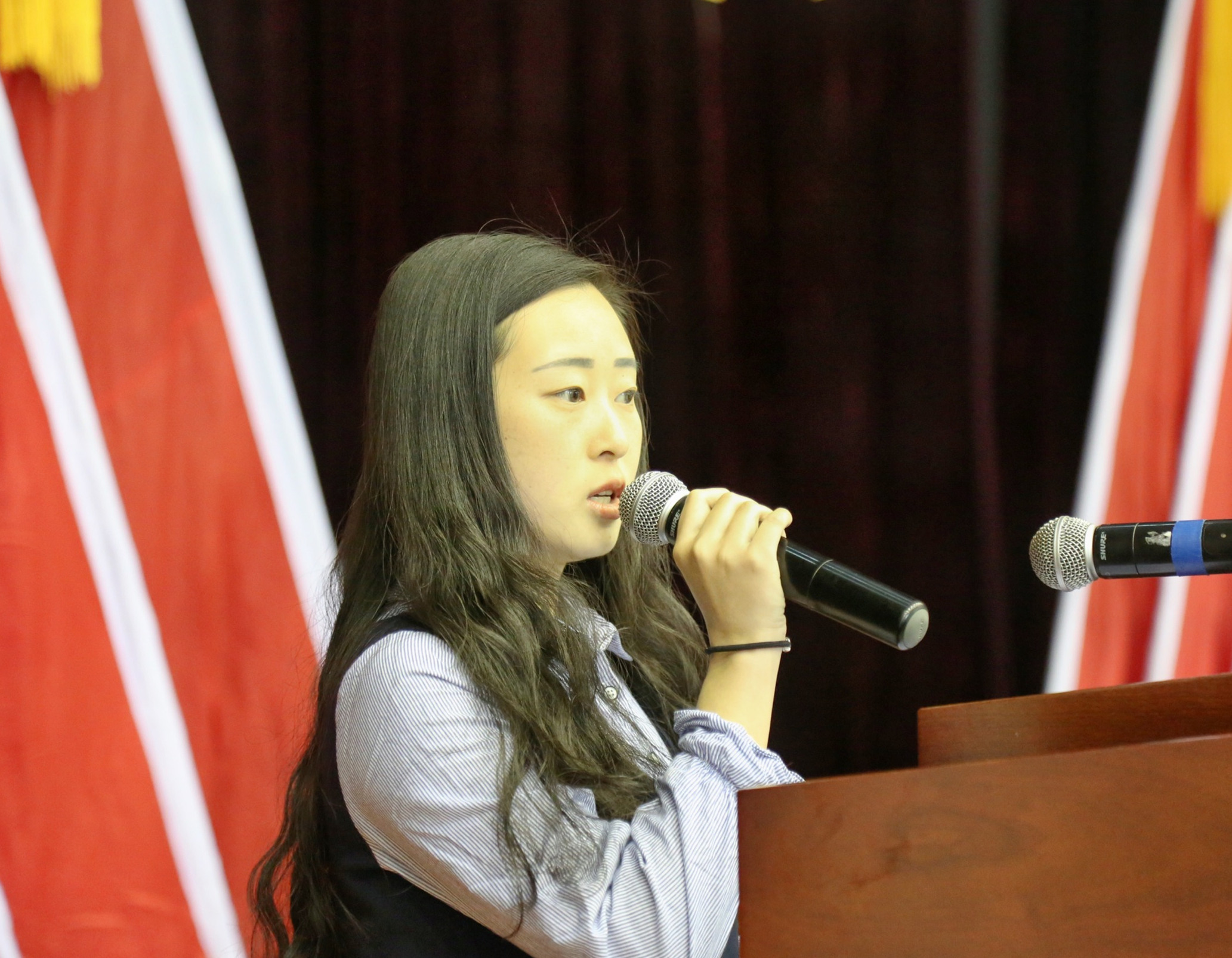 获“优秀团学干部”称号的学生代表张高青在发言中讲到:“作为一名学生会的干部,用责任和真情去完成自己的工作,从刚入学时的迷茫胆怯到现在的沉着大方,都是一步步在学生干部这个平台上历练出来的,团章中要求团学干部要成为楷模,我也在努力地践行着不断提高自己。”