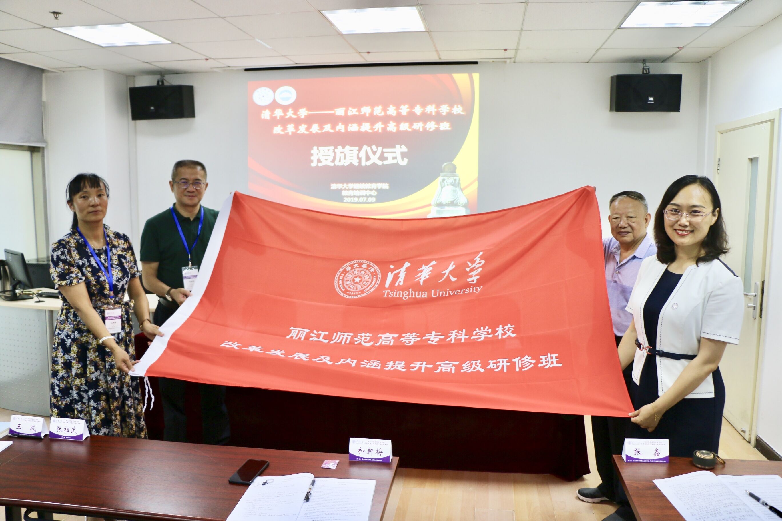 随后,清华大学继续教育学院为我校研修班举行授旗仪式、开学仪式,张祖武、和新梅接过班旗,现场奏起校歌,全体学员佩戴清华大学校徽。