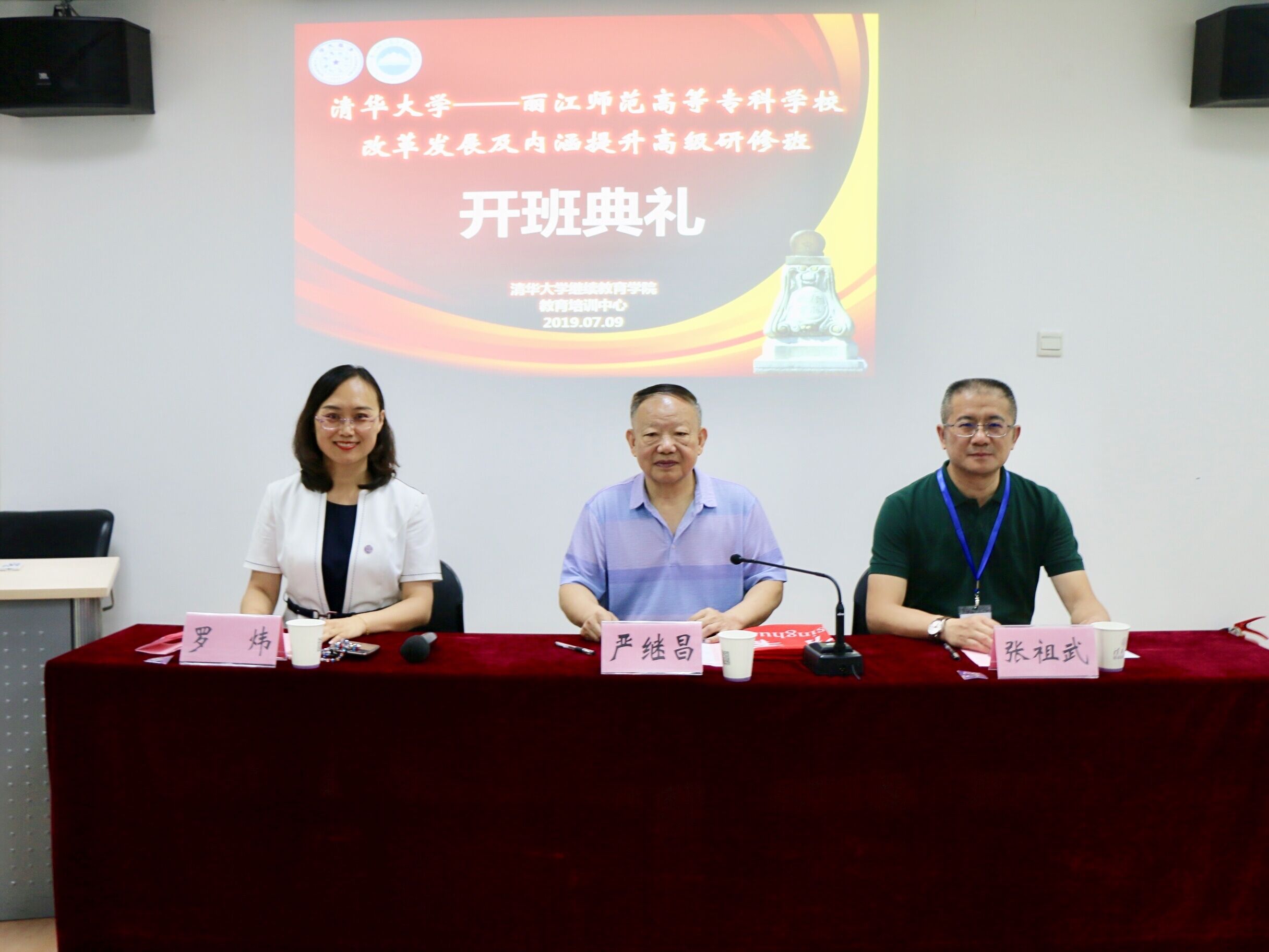 2019年7月9日上午9:00,丽江师范高等专科学校改革发展及内涵提升高级研修班在清华大学创新大厦举行开班典礼,清华大学继续教育学院原常务副院长严继昌、项目部主任罗炜及其他管理人员、我校党委书记张祖武及全体研修学员参加开班典礼。