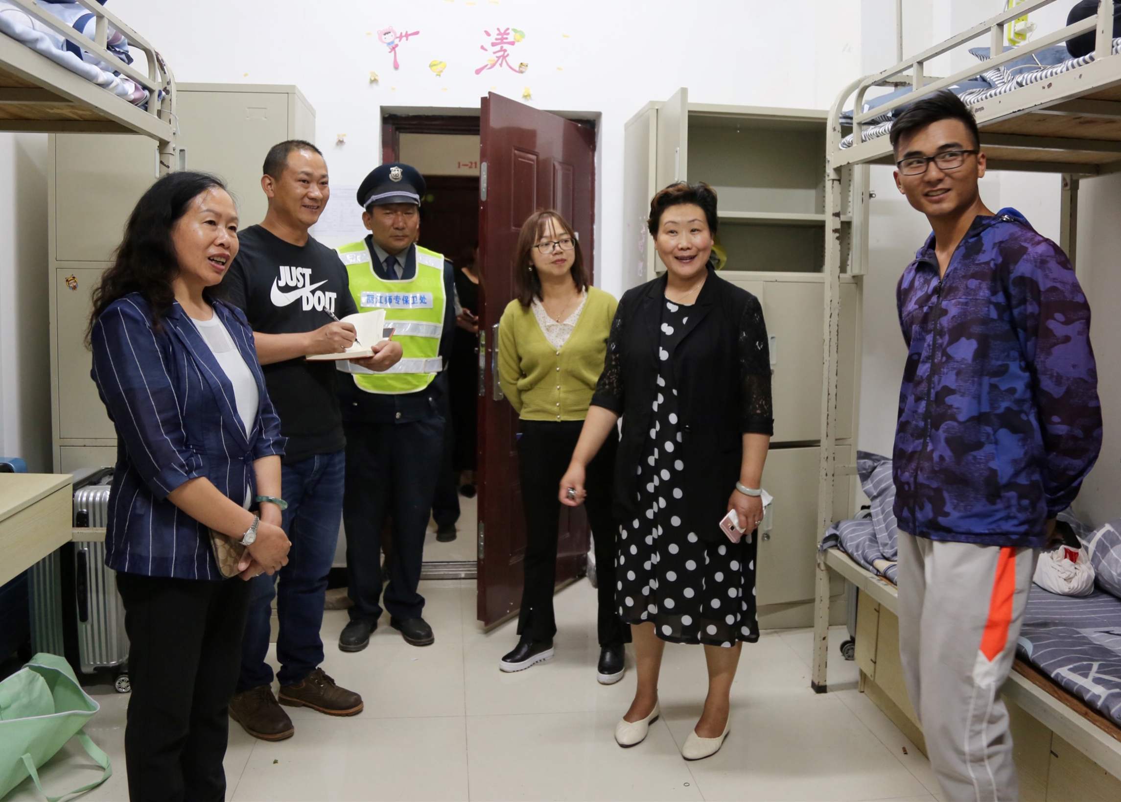 迎新工作已近尾声,为欢迎和鼓励广大2019级新同学,8月25日晚,校长张洪波、副校长朱桂香在相关职能部门负责人的陪同下前往新生宿舍,亲切看望2019级新生,与他们面对面交谈,送去学校对大家的慰问和关心,给刚入学的新生带去了家一般的温暖。
