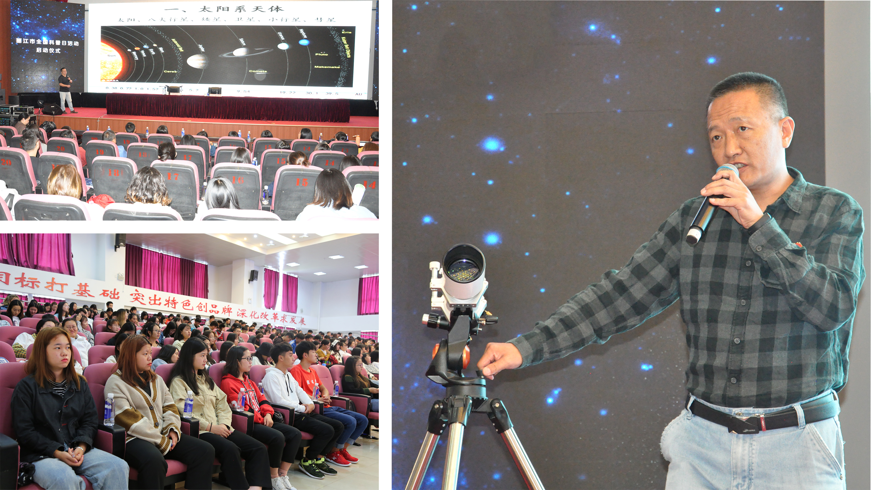 启动仪式结束后,全面拉开了全国科普日丽江市活动的序幕。中国科学院云南天文台丽江观测站副研究员张西亮、中国科学院云南天文台高级工程师杨赣虎分别为我校学生作题为《太阳系家族和丽江自己的星》、《望远镜基本原理简介》科普讲座。