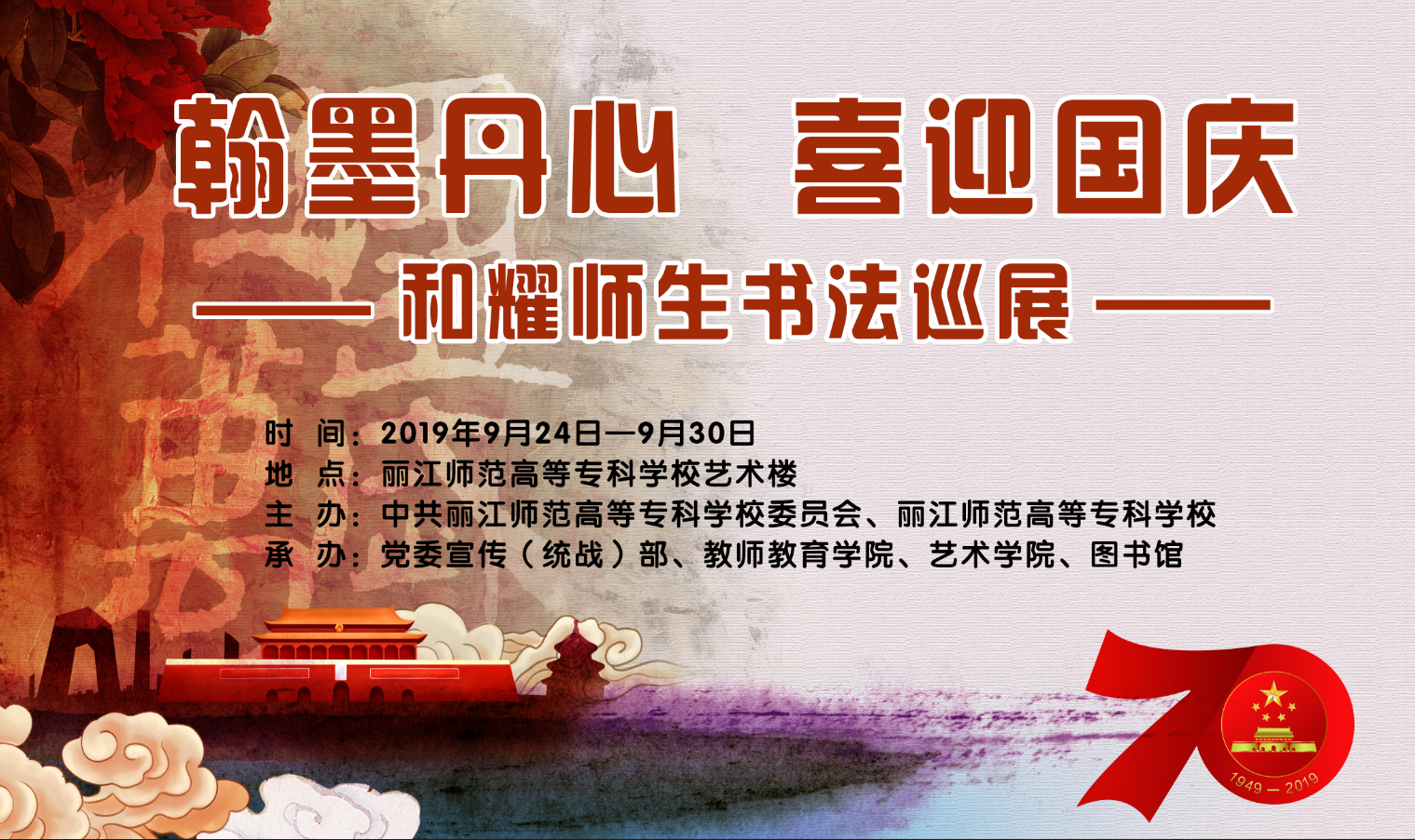 9月24日13时,“丽江师专和耀师生书法巡展”在学校艺术楼开展。校长张洪波,校党委宣传部、教师教育学院、艺术学院、图书馆等部门负责人和部分师生参加开展仪式。