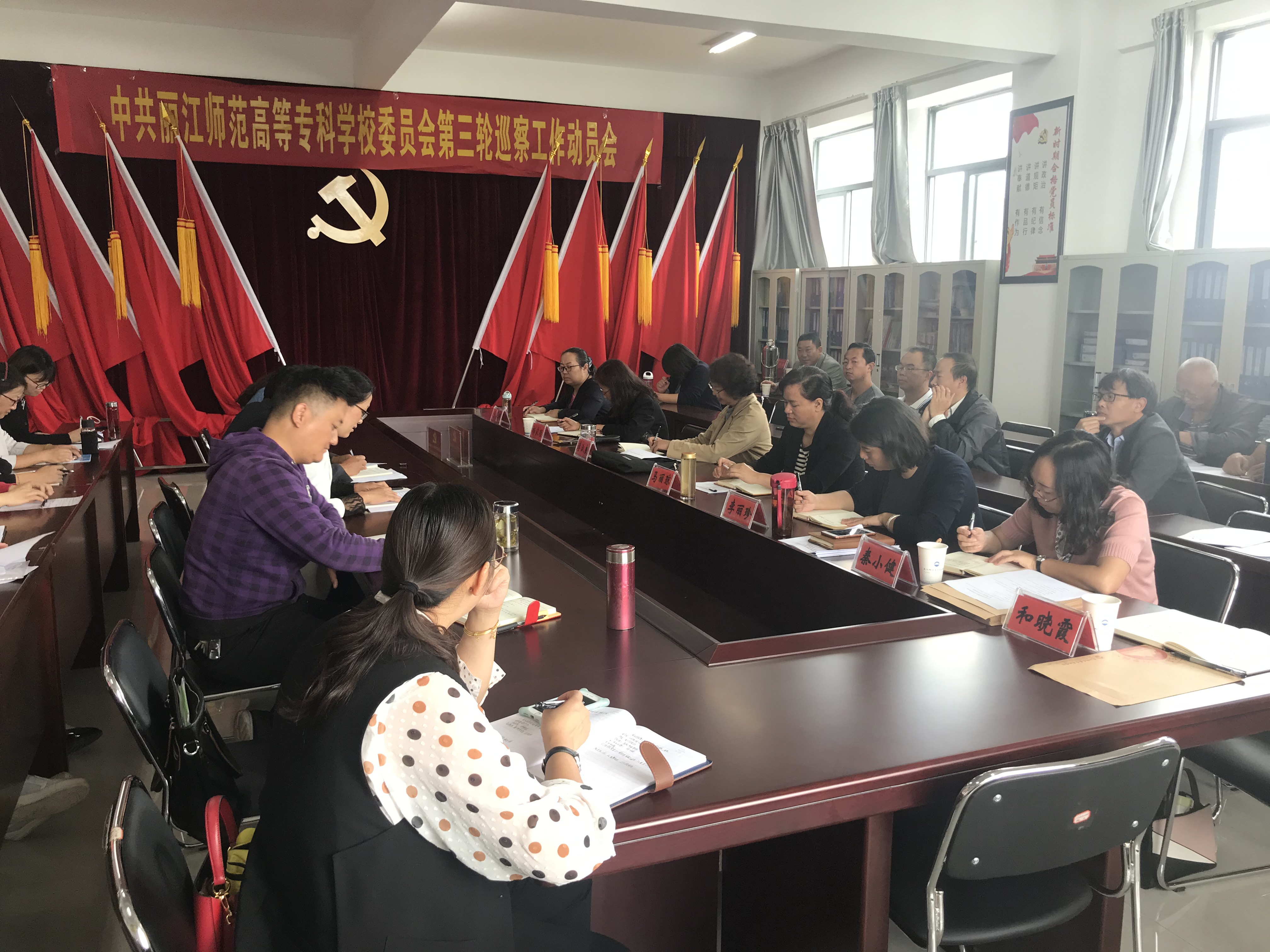 按照学校党委关于巡察工作的统一部署,2019年9月20日,校党委第三轮巡察组巡察旅游与经济管理学院工作动员会召开,校党委巡查工作领导小组副组长、纪委书记李淑良,校党委第三轮巡察组组长、党委组织部副处级专职组织员马丽琼,纪检监察办公室副处级专职纪检监察员杨家顺,巡察组全体成员,旅游与经济管理学院党政领导班子成员及全体教职工参加了动员大会,会议由旅游与经济管理学院院长杨小明同志主持。