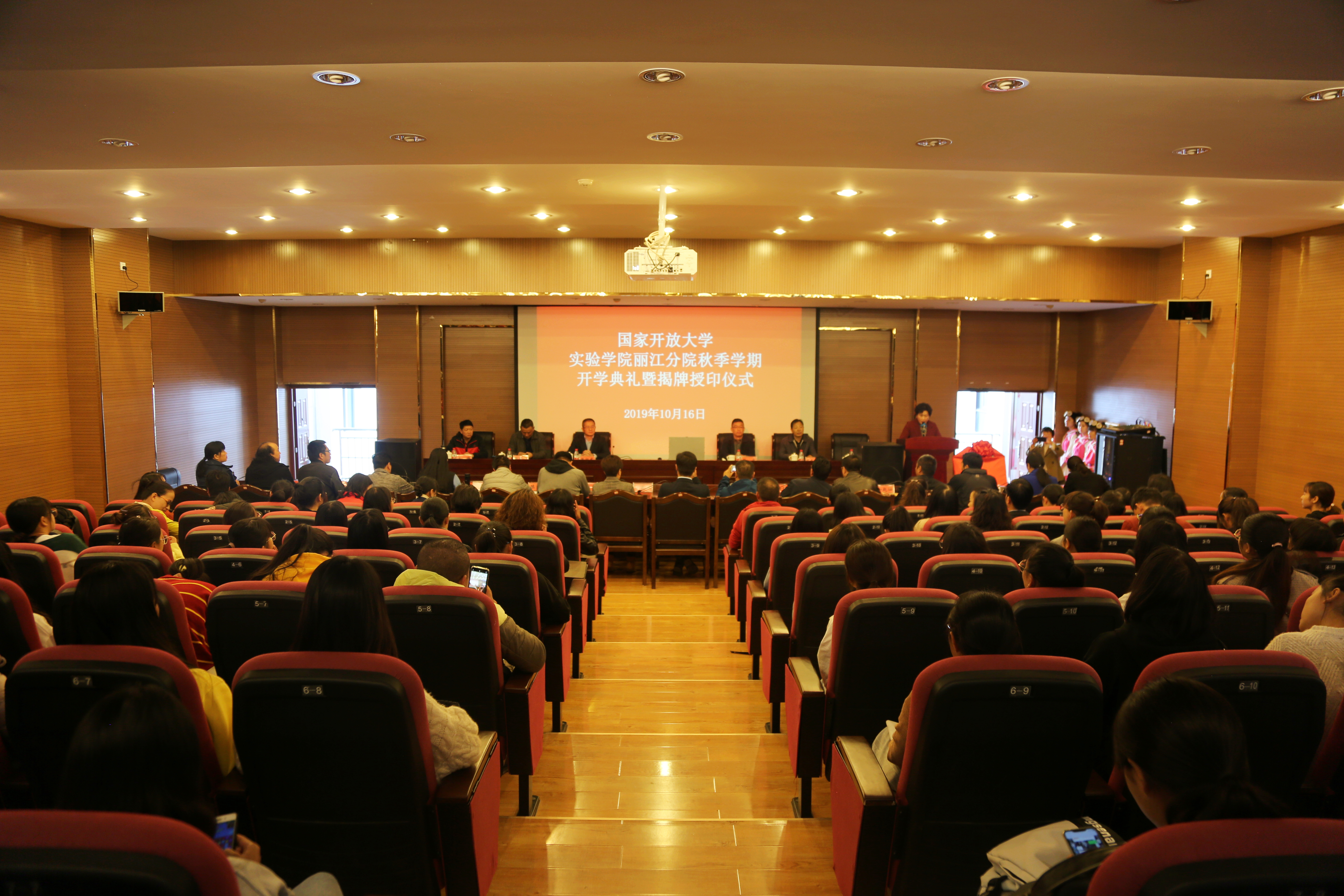 国家开放大学改革发展与政策研究室扶贫支援办公室郁章利、学习资源部王兆光、实验学院招生与学生事务中心王乳燕、国家开放大学实验学院丽江分院2019年秋季入学新生以及我校相关部门负责人参加仪式。