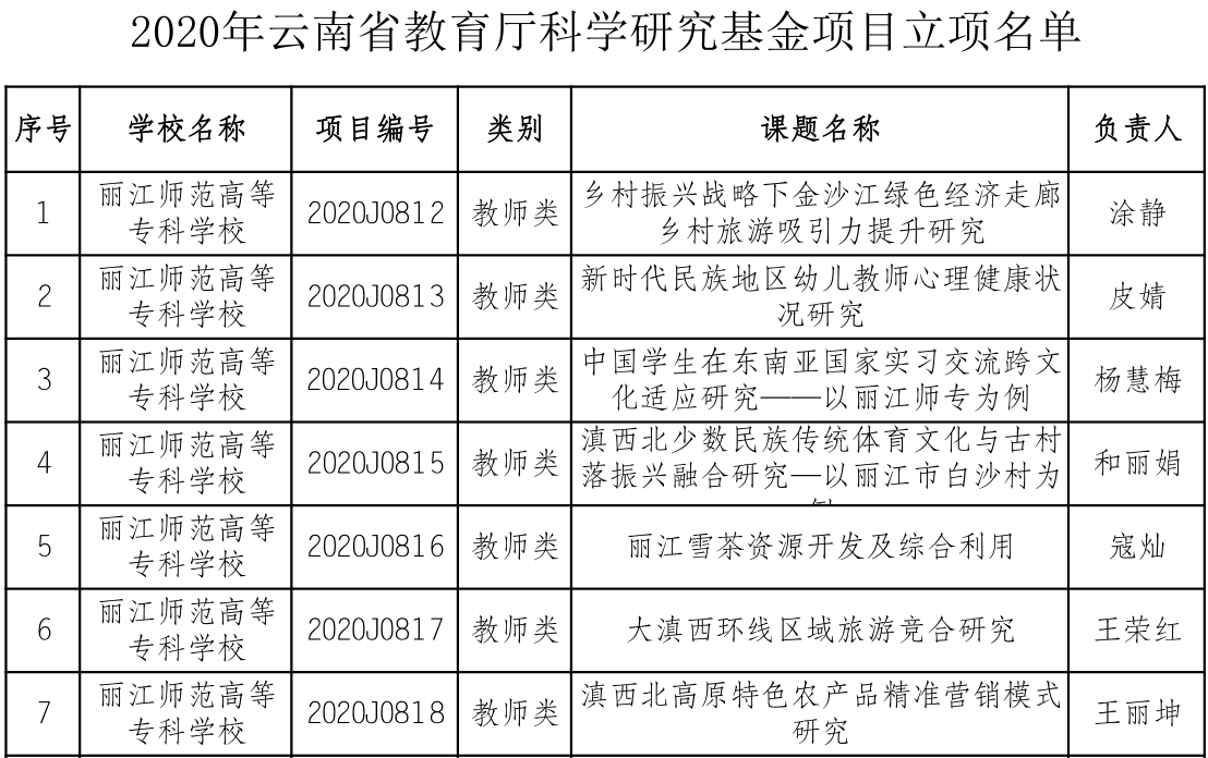 近日,我校收到《云南省教育厅关于下达2020年度科学研究基金立项项目的通知》,我校共计立项15项。