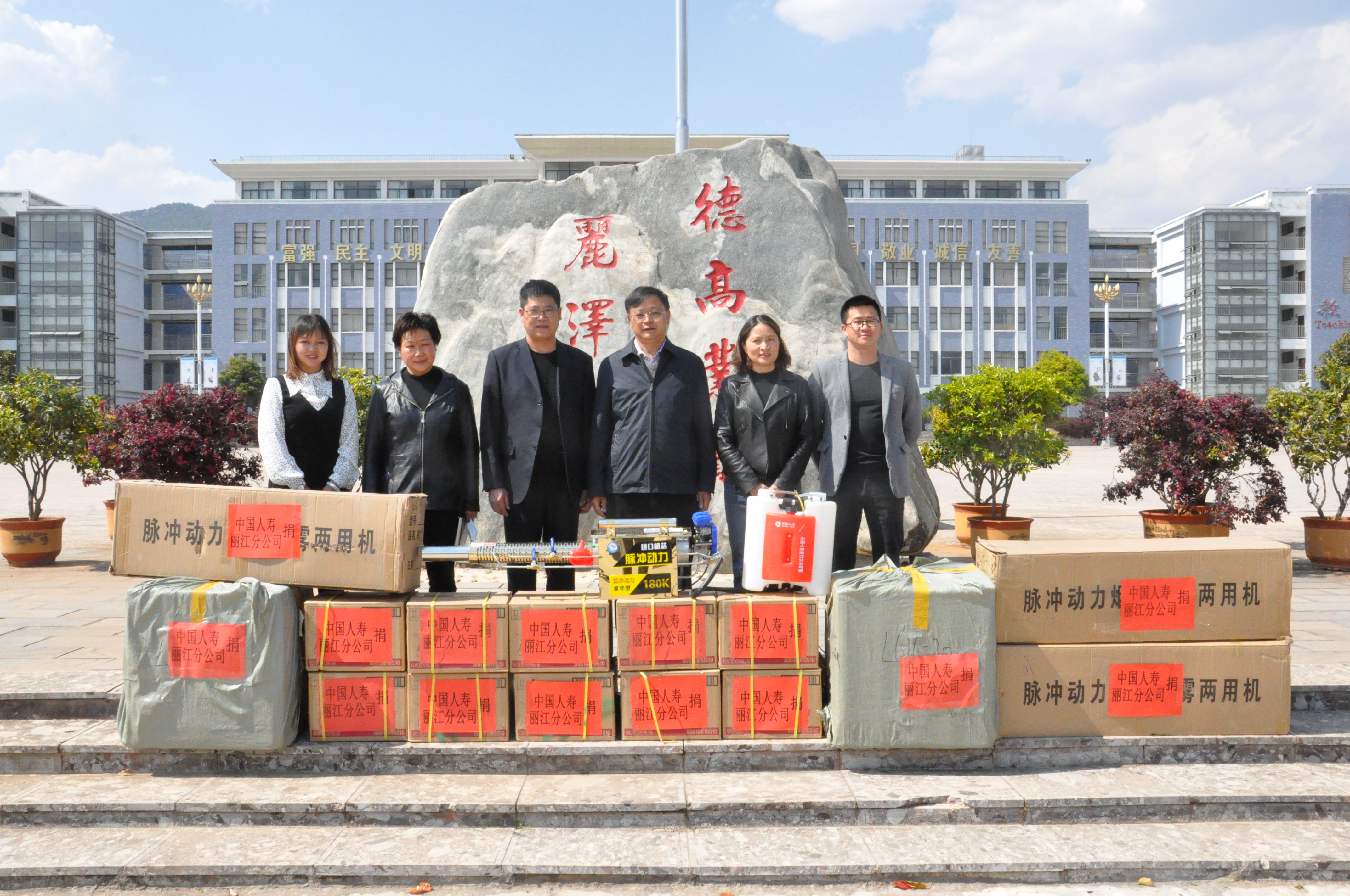 4月1日下午,中国人寿保险股份有限公司丽江分公司党委书记、总经理苏金奇到我校捐赠抗疫物资,为学校捐赠三台脉冲动力机、10箱消毒液、10000个纸杯,用于支持学校新冠肺炎疫情防控工作。