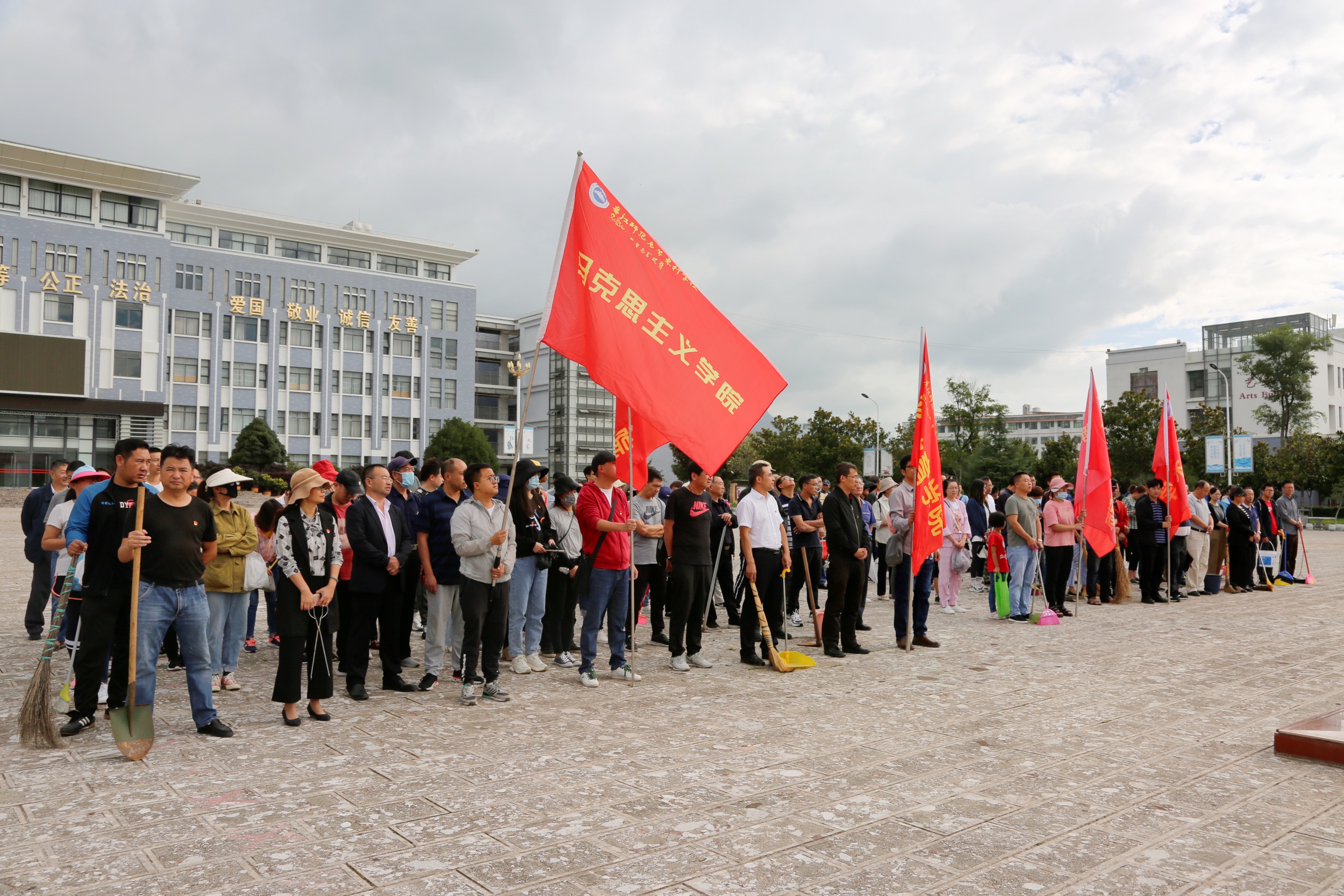 学校领导高度重视本次活动,严管理、细分工,全体教职工齐上阵。上午9时,大家自带工具来到学校南广场集合,党委副书记彭鸿昌作动员讲话,号召动员全体教职工以主人翁责任感投入到“创文”工作中,为丽江市创建文明城市和美化校园环境做出努力。随后大家根据提前划分好的区域参加义务劳动,集中清理校园周边环境,分散清理校内人行横道、教学楼、食堂、篮球场等公共区域。