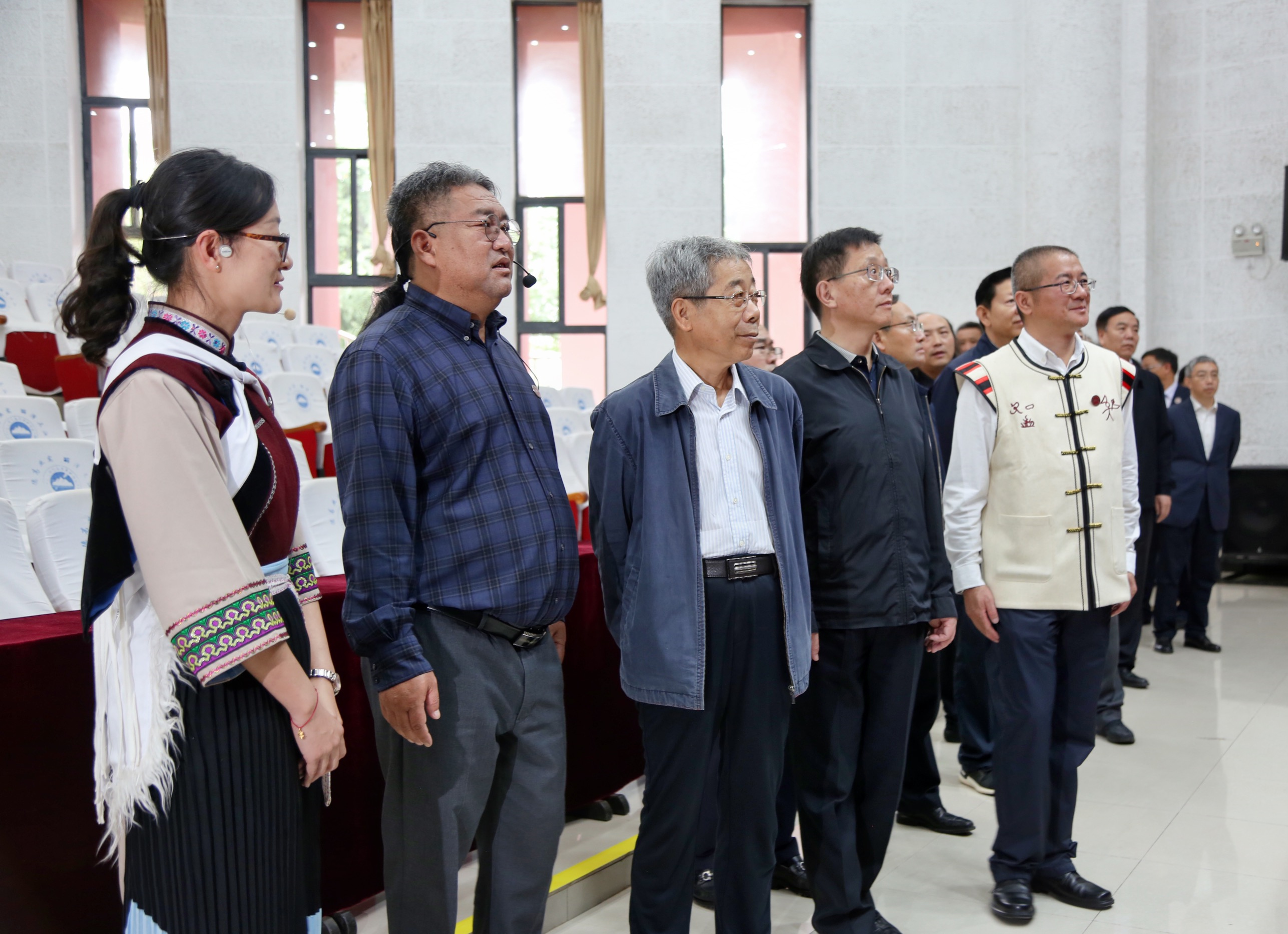 陈部长一行首先观看了学校的特色课间操——民族打跳。陈部长肯定了学校把民族团结进步教育与课程相融合,强化五个认同,铸牢中华民族共同体意识的教学实践。学校党委书记张祖武向陈部长详细汇报学校历史沿革、办学定位、办学宗旨、办学特色、学校建设发展规划、党建工作、思政课开展的情况等,张祖武还向陈部长介绍了丽江师专杰出校友张桂梅的事迹。陈部长指出,要广泛开展向张桂梅同志学习活动,进一步激励广大教师和教育工作者坚守教育报国初心,牢记立德树人使命,坚持不懈用习近平新时代中国特色社会主义思想铸魂育人,努力培养担当民族复兴大任的时代新人。