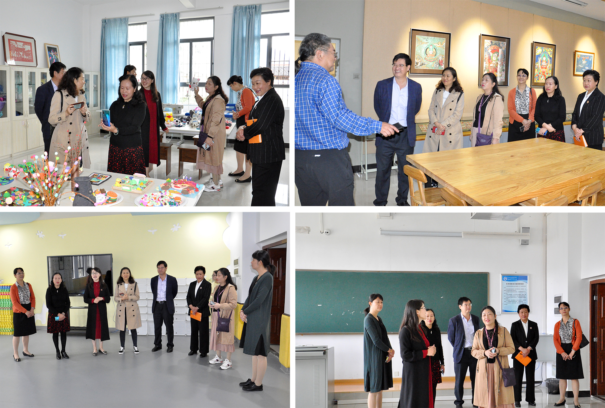 张洪波一行在朱桂香的陪同下实地察看了学前教育学院实训中心和艺术学院滇西北民族艺术传承基地。
