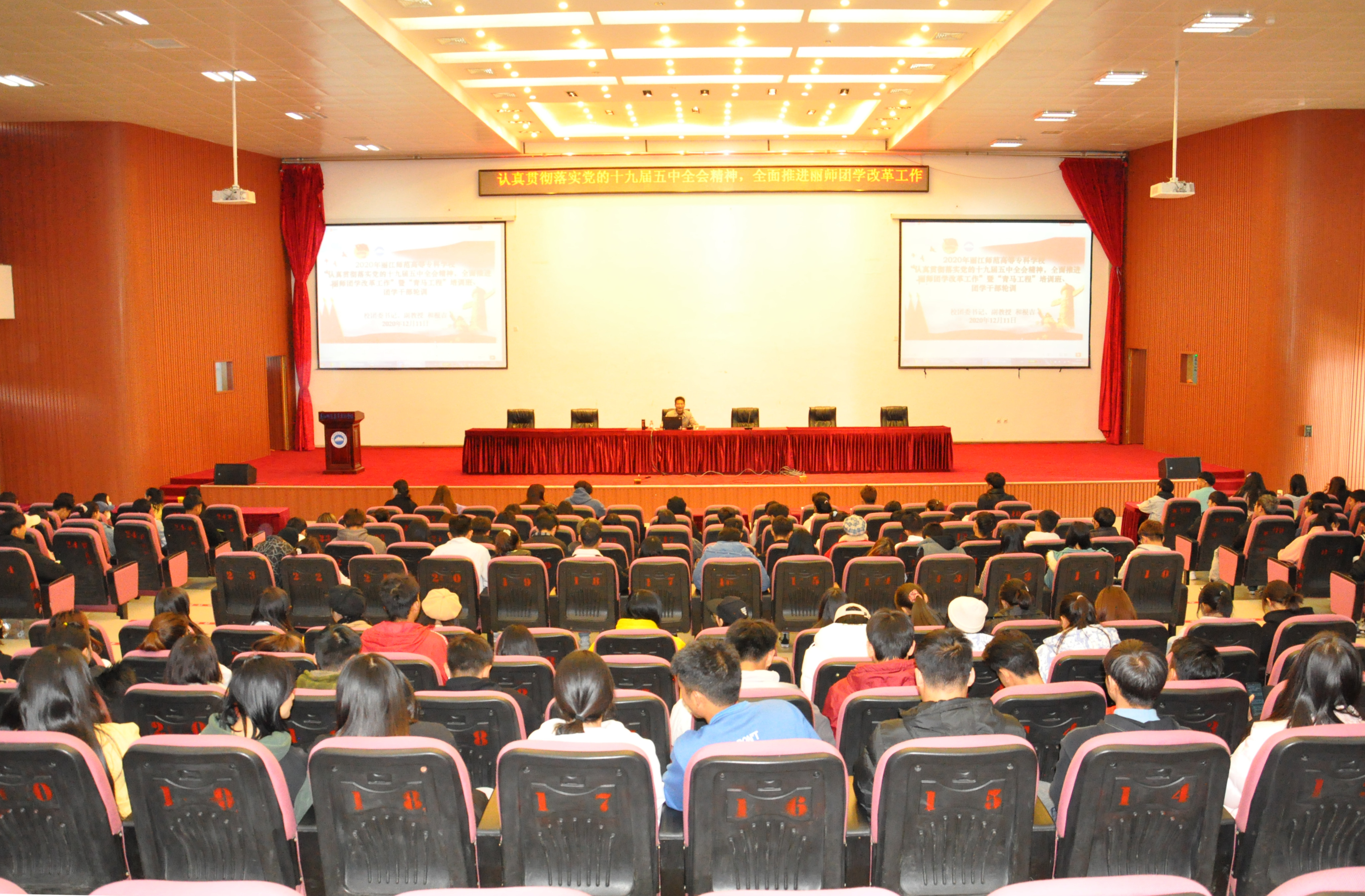 为全面学习贯彻党的十九届五中全会精神,12月11日下午,我校团委在图书馆报告厅组织团学干部学习党的十九届五中全会精神。校团委书记和根吉作专题辅导,200余名团学干部参加学习会。