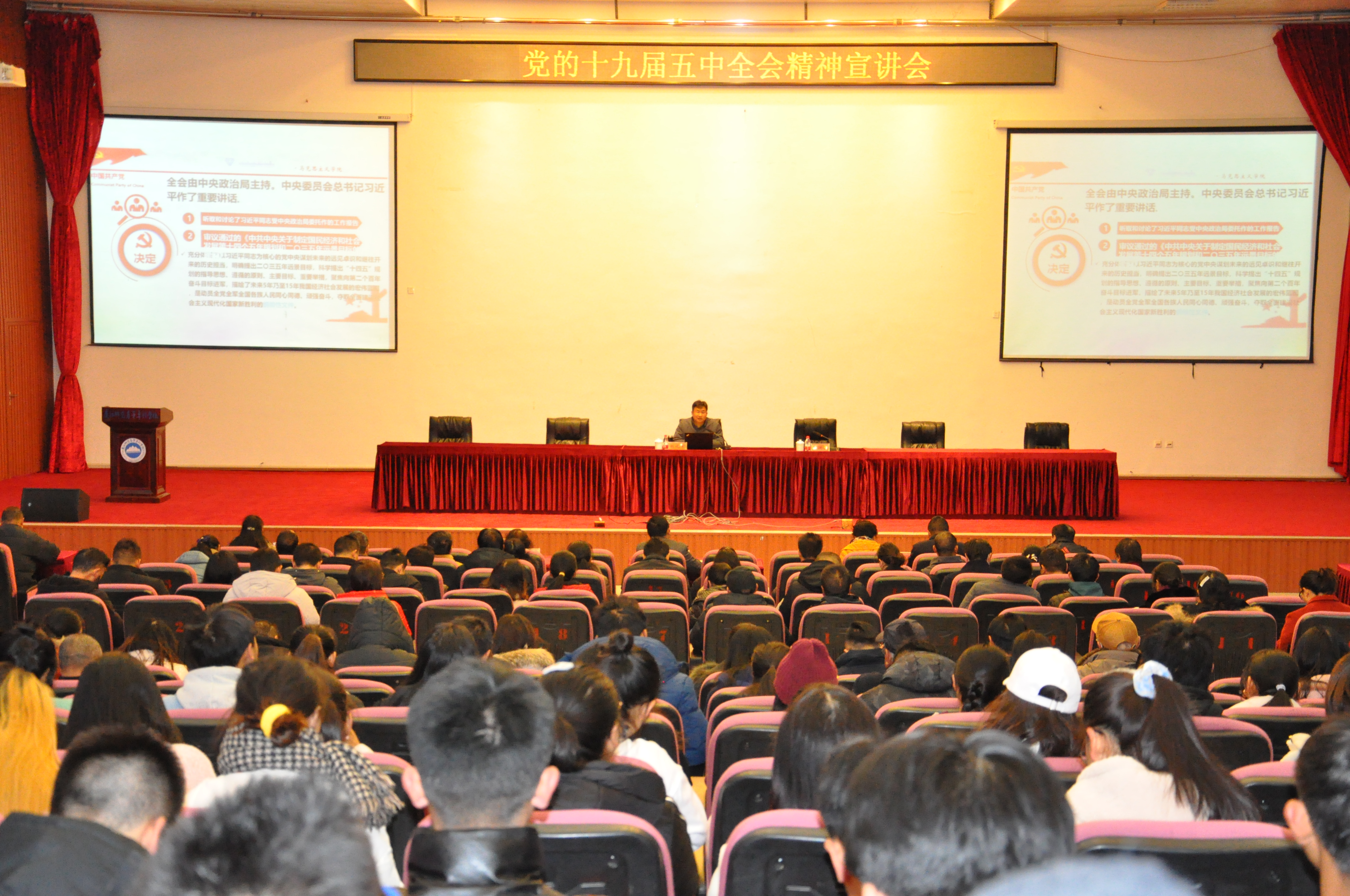 12月25日上午,学习贯彻党的十九届五中全会精神省委宣讲团到我校举行宣讲报告会,云南省委宣讲团、省委教育工委宣讲团成员,云南师范大学马克思主义学院院长刘化军教授在图书馆报告厅为我校师生作宣讲报告。校领导、无课教师、学生代表400余人聆听宣讲报告会。报告会由党委副书记彭鸿昌主持。