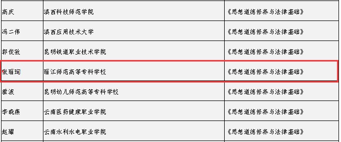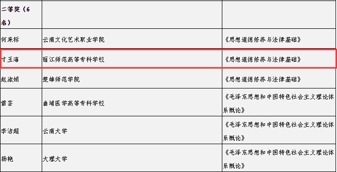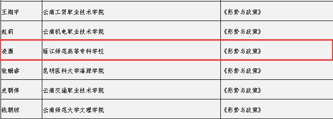 形势与政策组据悉,11—12月间,中共云南省委教育工委组织开展了全省高校思想政治理论课教师教学比赛,共评出一等奖19名、二等奖24名、三等奖38名、优秀奖99名。