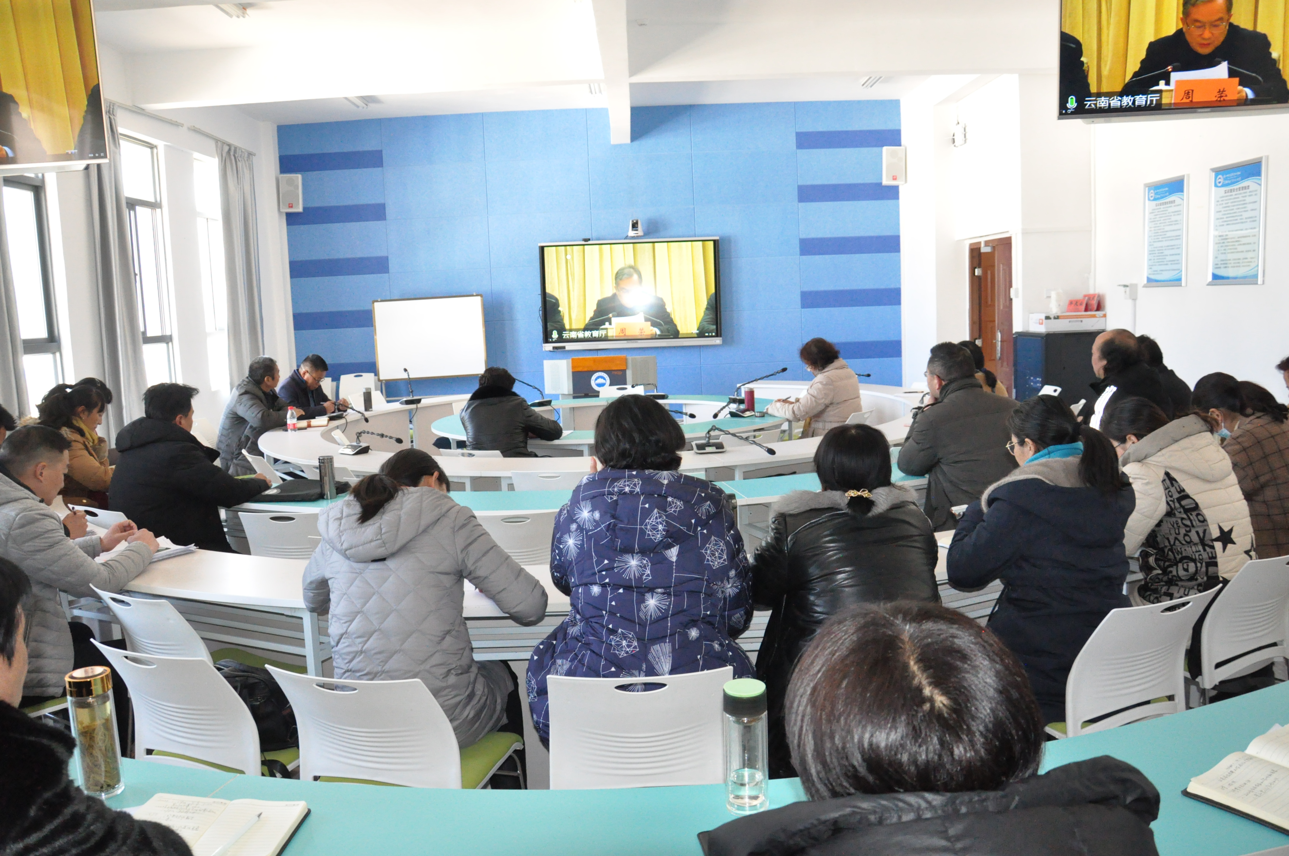为深入学习贯彻党的十九届五中全会精神,学习贯彻习近平总书记关于教育的重要论述和考察云南重要讲话精神,贯彻落实省委十届十一次全会和2021年全国教育工作会议精神,云南省教育厅于1月14日召开2021年全省教育工作会议。我校在实训楼502设分会场,学校领导、各学院、各部门负责人收看会议。
