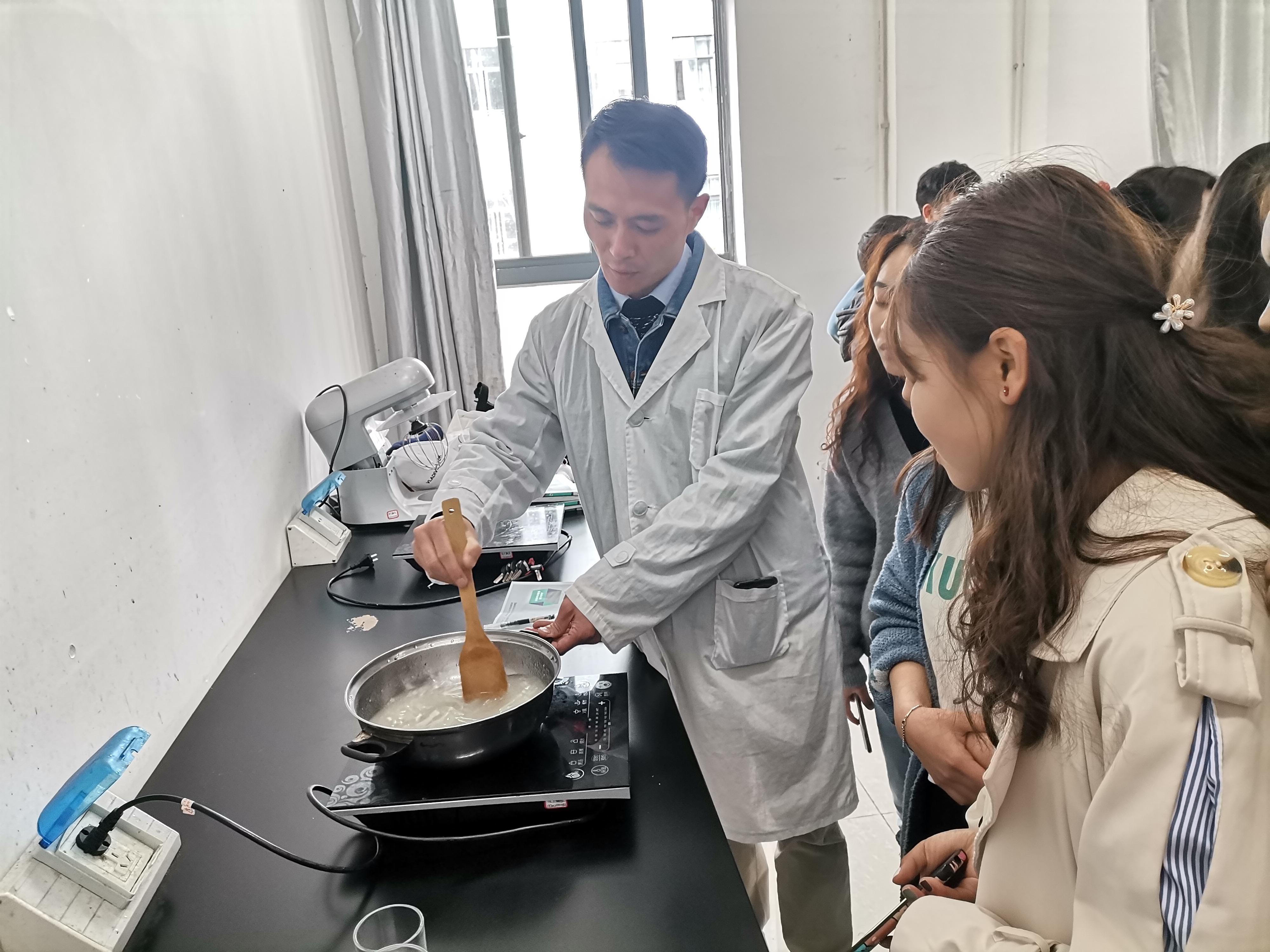 2021年4月2日10点,应用技术学院食品营养与检测专业樊丹敏老师在实训楼202教不同专业的40余名学生制作“趣味果冻”。学生们根据果冻制作的原料分为“葡萄组”“木瓜组”“玫瑰花组”“芒果组”,在食品食品营养与检测专业师生的带领和指导下,做出了色彩各异、香甜可口的果冻。此次活动将食品加工专业知识和日常生活美食制作结合在一起,现场气氛活跃,学生不仅学到了知识技能,还展示了创意和作品。