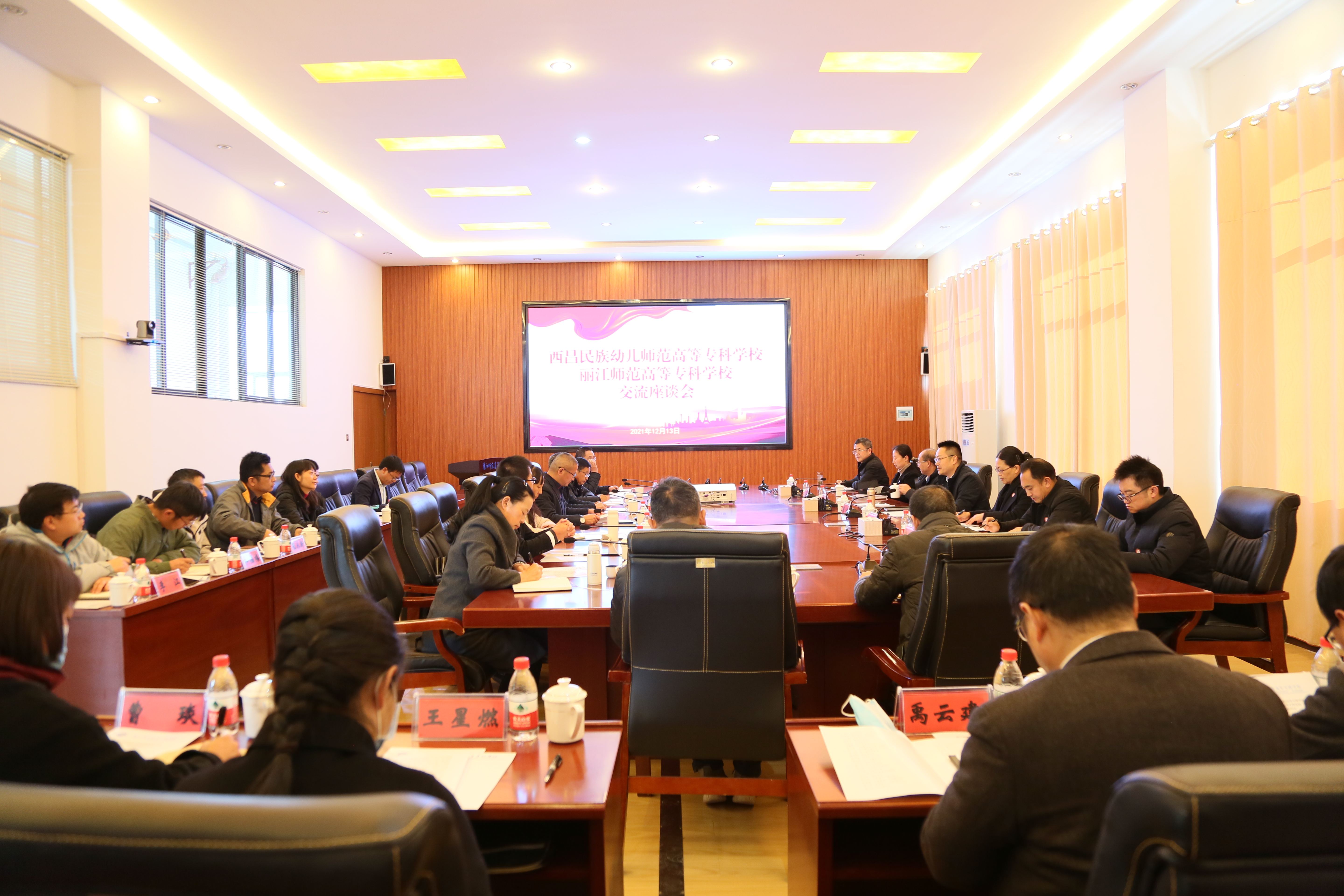 学校与西昌民族幼专在办公楼第三会议室举行座谈会。学校党委书记张祖武,党委委员、副校长张兰胜,相关学院、部门主要负责人,西昌民族幼专调研组一行参加座谈会。会议由张祖武主持。座谈会上,全体与会成员观看了学校宣传片《滇西北教师的摇篮》和西昌民族幼专宣传片。