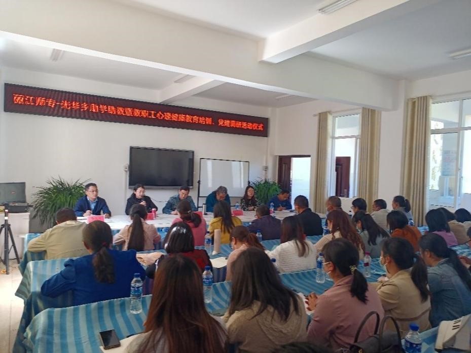 2022年4月22日,根据光华乡中心学校上半年“助学助教”实际需求,学校派出学生处心理健康教育咨询科张翠微、段士爱老师到光华乡中心校为108位老师进行为期一天的教职工心理健康教育培训。