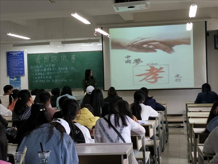 2017年5月11日,外语系在教学楼227教室举办了以“中国梦·青春梦”为主题的“看图片,讲英文故事,展职业技能”比赛。