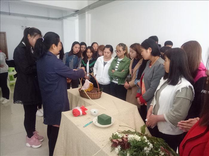 为弘扬劳动光荣、技能宝贵、创造伟大的时代风尚,形成“崇尚一技之长、不唯学历凭能力”的良好氛围。生命科学系于2017年5月12日9:00—12:00在实验楼二楼大厅举办第六次职业教育活动—“创意插花”。生命科学系周丽贞老师为本次活动主要负责人,活动现场气氛活跃,参加本次活动人数达40余人,自主到场参观人员众多。后勤人员布置完场地后,活动正式拉开序幕,周丽贞老师为同学们精心讲解操作事项后正式进入动手操作阶段,操作过程中同学们互相交流学习,最终设计出一个个美丽的插花作品。此次活动丰富了校园文化生活,培养学生动手、动脑及审美能力,陶冶情操,激发学生的创作热情,同时全面提高学生综合素质和对艺术美的追求。