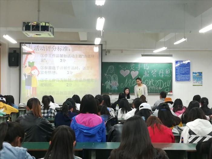 2017年5月13日,外语系在教学楼224教室举办了以“心灵手巧,报答母恩”为主题的手工制作大赛。