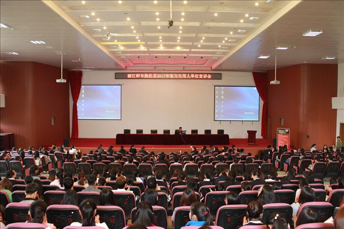 为持续推进我系校企合作进程,进一步落实我系2015级学生顶岗实习的相关工作,2017年5月12日13:00在学校图书馆报告厅丽江复华集团、丽江官房大酒店、丽江金茂君悦酒店等10余家合作单位应邀向我系全体2015级实习生进行实习宣讲。旅游与经济管理系副主任和燕杰、旅游与经济管理系学生科长朱道平以及部分相关教师参加了此次宣讲会。