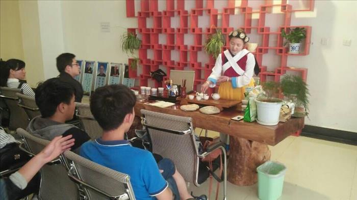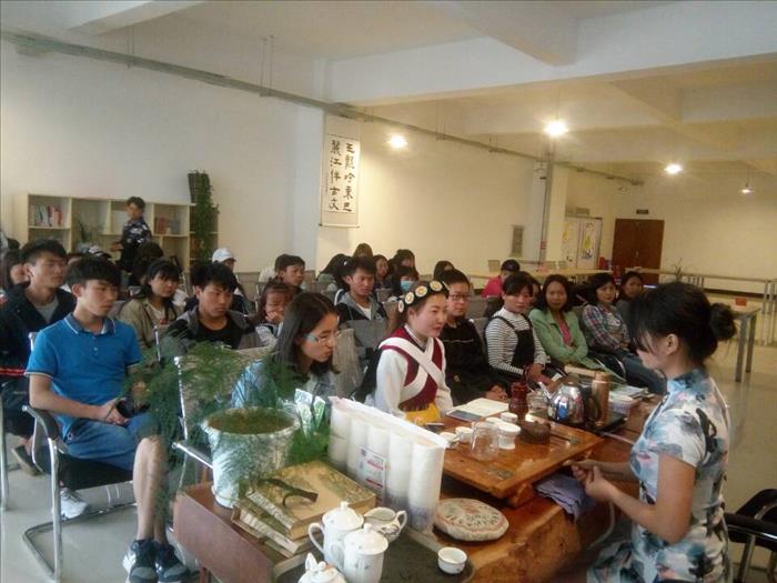 根据学校2017年职业教育活动周实施方案的要求,2017年5月8日下午,生命科学系教师寇灿(高级茶叶审评员;茶艺师)和系内外50多位学生在图书馆书吧进行了茶文化推广及茶艺表演职业技能展示活动。获得茶艺师资格的学生对茶艺进行了讲解,并分别为同学们展示了烘青绿茶、普洱生茶、普洱熟茶的茶艺表演。最后,寇灿老师介绍了中国茶的分类,云南普洱茶的主要鉴赏、品评要点,茶礼茶俗等茶文化知识。通过此次茶文化推广活动加深了同学们对于茶文化的兴趣和理解,对于提高学生的人文素养和职业理念是很有裨益的。