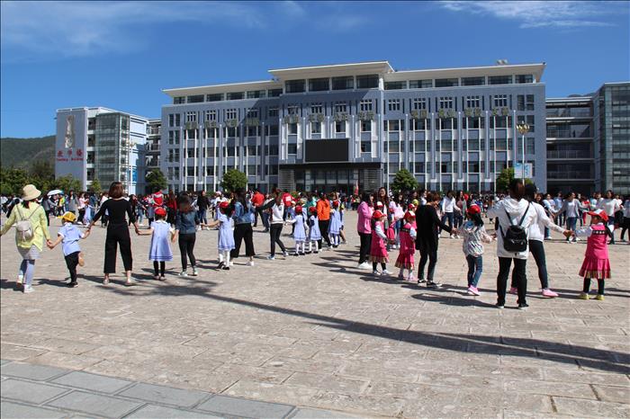 我校2017年职业教育活动周于5月8日正式启动,本次活动是职业教育活动周中的其中一项活动安排。根据活动安排,早上9点30分含若含蜜幼儿园的幼儿抵达学校后,经过简单的休整,先是参观了生命科学系的高山植物标本馆,让幼儿们感受了滇西北多样的生态植物展。随后,幼儿们在学校南广场与教育科学系的学前专业同学一起参与了课间操打跳。最后,幼儿们又到教育科学系位于实训楼一楼的实训室进行了参观并由2015级学前教育四班的55名同学分组与幼儿进行了互动游戏。