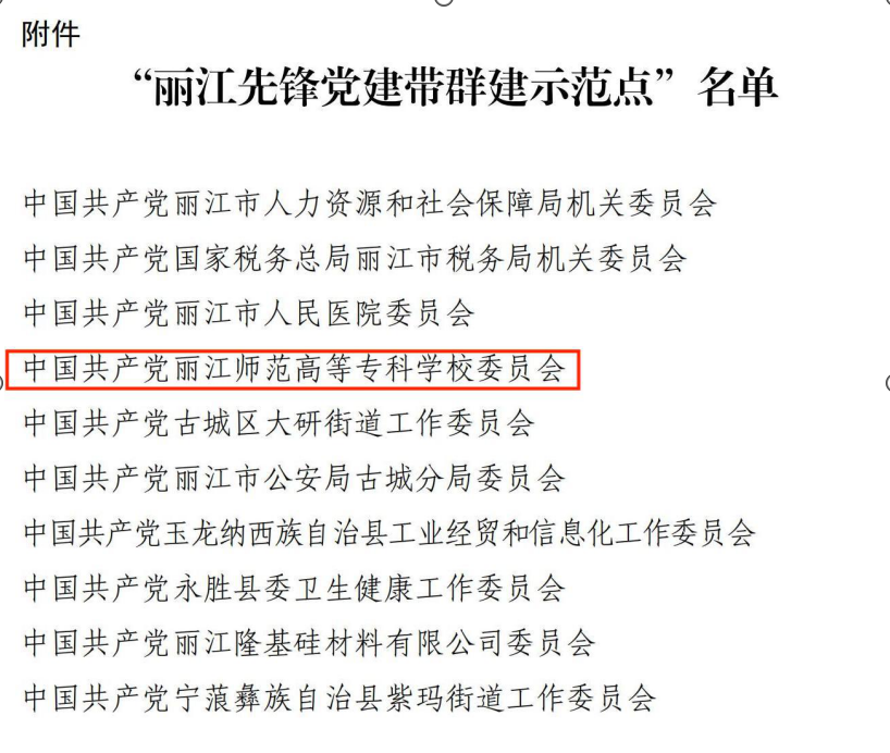 持续对标先进,创建“一流党建”示范点。校党委入选全省基层党组织示范点培育名单、被丽江市委组织部选树为“丽江市党建带群建示范点”并推荐申报第一批“云岭先锋党建带群建示范点”,19篇党建工作相关经验做法类文章被云南网等媒体宣传报道。