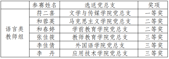 来自11个党总支的参赛师生带来了17个宣讲作品,经过激烈角逐,文学与传媒学院党总支符二喜的宣讲作品《好作风 高效能 保障云南“3815”战略》获语言类教师组一等奖,马克思主义学院2021级小学道德与法治教育班史敏力的宣讲作品《扬帆起航二十大 时代青年勇担当》获语言类学生组一等奖,机关党总支李艳婷演唱的原创歌曲《冬去春来》获文艺类一等奖。