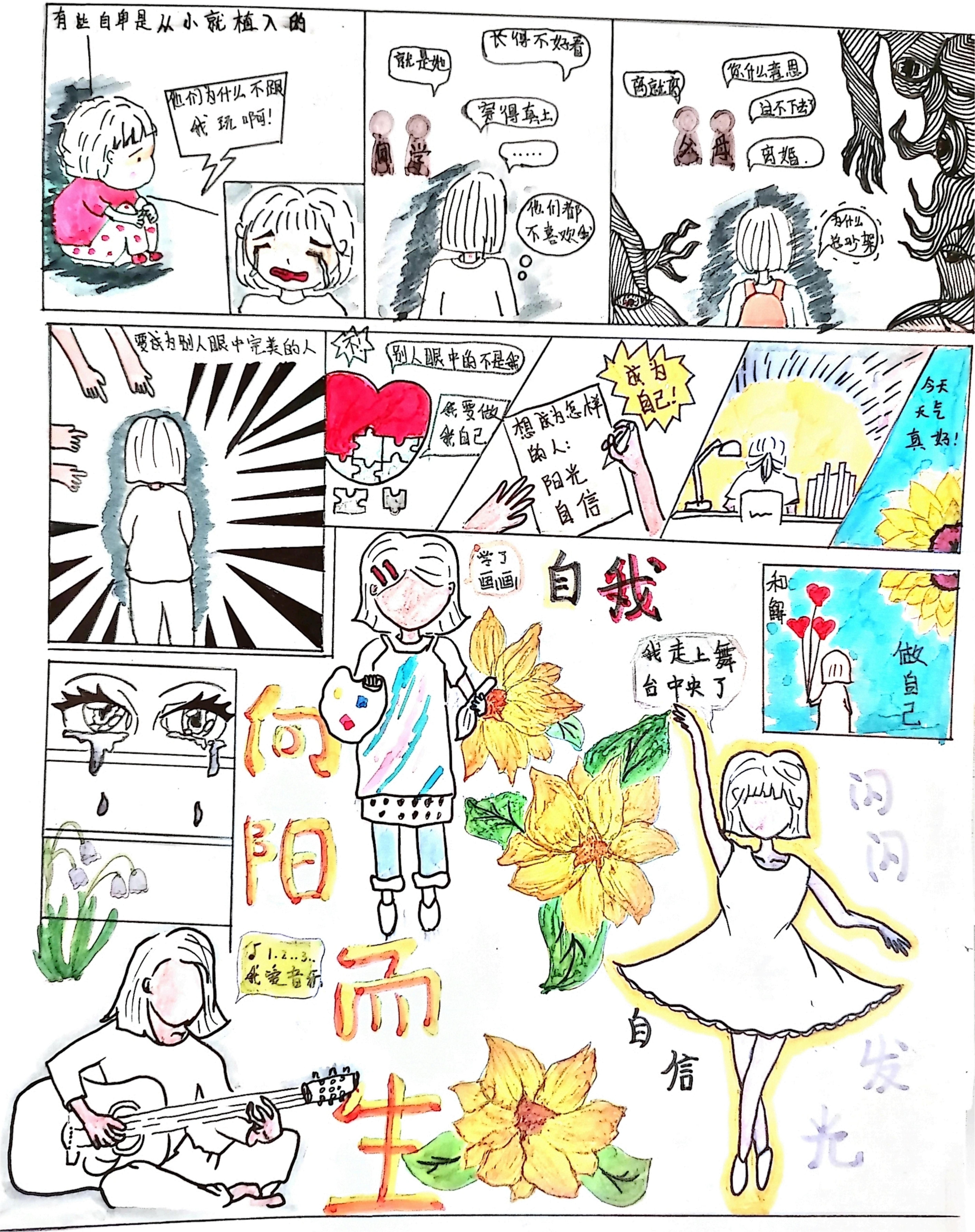 心理健康宣传设计大赛以心理健康宣传为出发点,注重开发学生动手设计能力,并将心理健康知识内化于心,外践于行,同学们集思广益,设计出一幅幅主题鲜明、创意新颖、生动精美的作品,2023年心理健康宣传设计大赛漫画类获奖作品新鲜出炉,让我们一起来欣赏佳作吧!