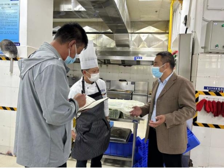 张兰胜深入食堂后厨检查食品加工操作、食材储存仓库、餐具清洗消毒等情况,对学校食品留样情况作了重点询问和检查,了解食堂卫生和餐饮安全情况。