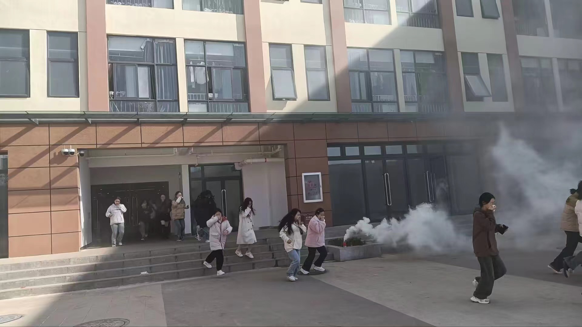 经学校前期的精心组织,周密安排,消防广播一响,烟雾弹点燃,各楼层负责老师组织学生进行疏散工作。全体师生沉着冷静、互相合作,一切行动听从指挥,按照学校制定的应急方案,圆满完成了此次紧急疏散活动